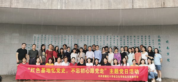 7月2日,安徽红十字会卫生学校以“党建”引领“团建”,前往宣城市泾县皖南事变烈士陵园和云岭新四军旧部等地开展红色学习,深入学习贯彻习近平总书记在庆祝中国共产党成立100周年大会重要讲话精神,充分展示中国共产党带领全国各族人民在中国革命、建设和改革历程中取得的重大成就,进一步感悟红色情怀、传承红色文化、弘扬红色精神,隆重庆祝中国共产党成立100周年。校党总支书记方劲松、校长洪梅、副校长胡军健带队参加学习。