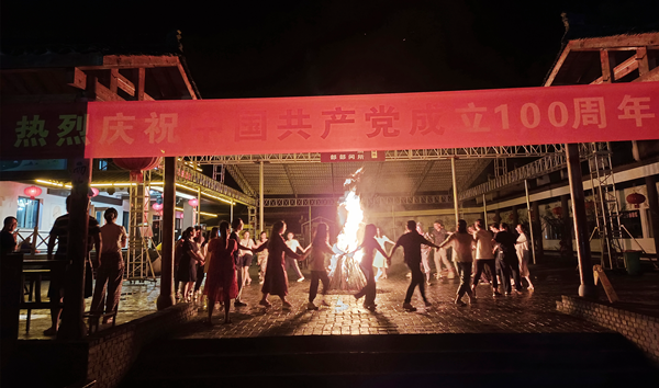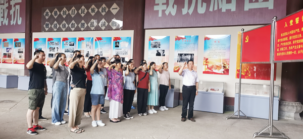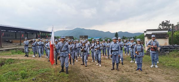 在云岭新四军旧部,全体人员跟随解说员的脚步,在瓢泼的风雨中回顾红色历史,依次参观了军部司令部、军部大会堂等,聆听老一辈无产阶级革命家的英雄事迹和感人精神,深切感受到叶挺、项英等革命同志带领新四军在极端恶劣的环境中开创的光辉业绩,表达对革命先烈的敬仰和怀念之情,为伟大的中国共产党感到无比自豪。党员同志面对鲜红的党旗,庄严地举起右手,重温入党誓词,以铿锵有力的声音,更加坚定了不忘初心,牢记使命的信念和决心。