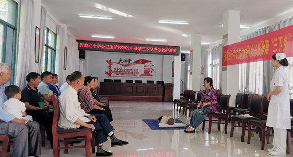 7月20日,红会卫校“美小护”应急救护志愿服务队在金寨县千坪村村委会的指导帮助下,顺利开展应急救护知识普及和美育班社会实践活动,千坪村第一驻村书记凌志军、千坪村党支部书记、村委会主任李磊和部分村民代表参加本次社会实践活动。此外,本次应急救护知识普及和美育班的实践活动开展也是红会卫校“红十字精神在卫生类中职学校德育工作中的实践研究”课题组在进行课题具体内容实践的一部分,课题组将通过实践进一步加强课题调研论证。