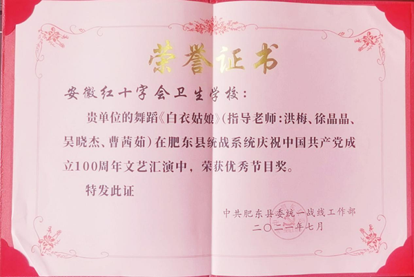 在全县统战系统庆祝中国共产党成立100周年文艺演出中,我校选送的舞蹈《白衣姑娘》荣获全县统战系统庆祝建党成立100周年文艺汇演优秀节目奖,学校荣获县统战系统庆祝建党100周年文艺汇演优秀组织奖。(文/丁卫东;图/县委统战部)