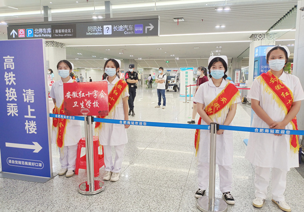 志愿者主要分布在合肥高铁站、合肥火车站等迎新站点和校园内,全力做好新生入校报到的志愿服务工作。清早,我们的迎新站点志愿者就跟随校车前往各站点,准备开始在站点的志愿服务活动。这两天的汽车站、火车站总是可以看到红会卫校志愿者忙碌的身影。校园内,青年志愿者们积极协助报到新生搬运行李、指路带路、协助新生班主任办理报到等事宜。