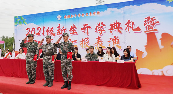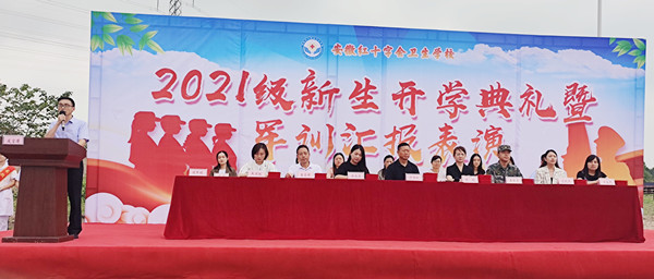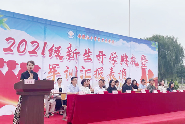 凉风飒飒金秋来,学子莘莘展英姿。9月7日上午,红会卫校2021级新生开学典礼暨军训汇报表演在学校篮球场隆重举行。校党总支书记方劲松、校长洪梅,校长助理徐晶晶、教官代表王新宇出席本次典礼,学校中层管理人员、新生班主任、部分教职员工、老生代表参加典礼。典礼由副校长胡军健主持。