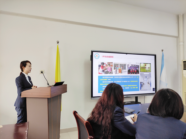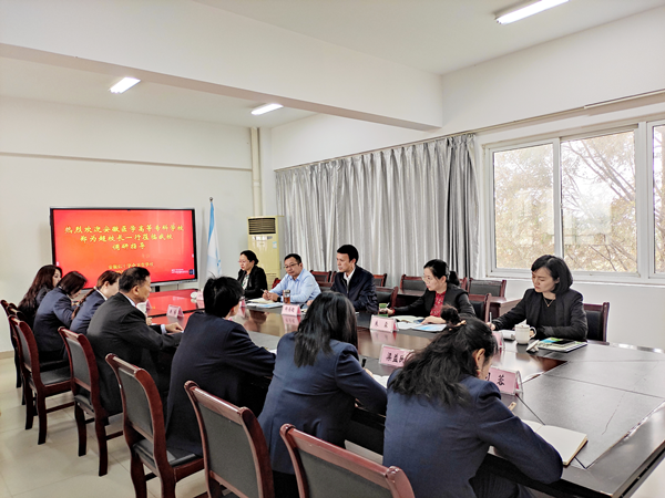方劲松代表学校向安徽医学高等专科学校郑为超校长一行的到来表示热烈的欢迎。洪梅代表学校从基本情况、办学特色、培训业务、发展愿景等方面进行详细介绍。