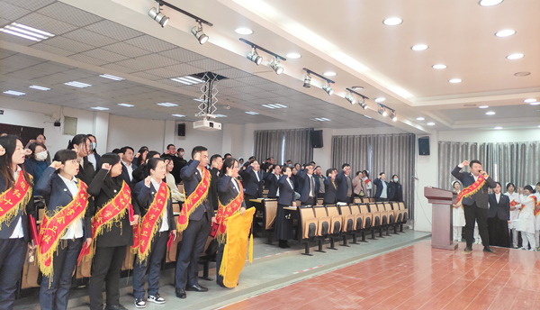会上,全体教职工在招生办公室万世超老师的带领下进行宣誓,通过一句句傲争铁骨的誓词,表达出全体红卫人2022年招生工作的必胜信心与决心。