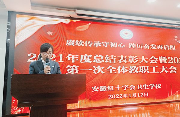 红会卫校2021年度工作总结表彰大会暨2022年第一次全体教职工大会在欢声笑语和喜气洋洋的活跃气氛中圆满落下帷幕。(文/丁卫东;图/尹忠芹)