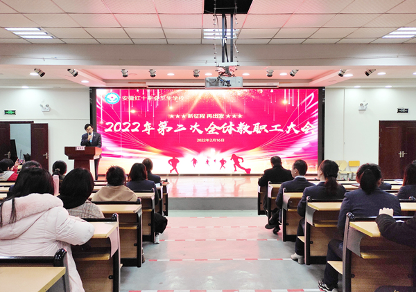 最是一年春好处,姹紫嫣红二月花。2月16日下午,春季学期开学的第一天,在做好疫情防护工作的前提下,红会卫校在教学楼一楼多功能厅召开2022年度第二次全体教职工大会,会议由副校长胡军健主持。