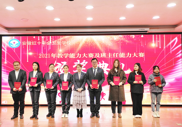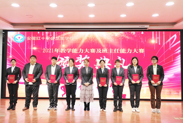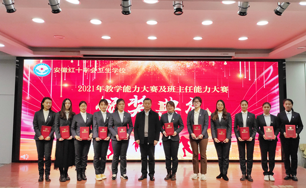 教务处副主任沙雯宣读校级教学能力大赛表彰文件,学生处主任朱丽敏宣读校级班主任技能大赛表彰文件。随后获奖的教师分别上台领奖,洪梅校长、方劲松书记分别为教学能力大赛、班主任技能大赛获奖的教师进行颁奖。
