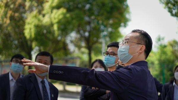 王伟程一行在校门外测温、亮码、登记,了解学校门岗管控情况,随后实地察看了校园环境,在察看过程中详细询问了学校疫情防控相关措施,学校校长洪梅从校园封闭管理、师生员工行程管控、应急情况处置、核酸检测、防疫物资储备、校园安全等方面进行汇报。